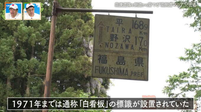 現在一般道路に設置されているのは青色に白文字の案内標識ですが、1971年以前は今とは配色が逆の白色に青文字、通称“白看板”が設置されていました。掛け替えや劣化などにより、“白看板”が現存している場所はわずかなのだとか。
