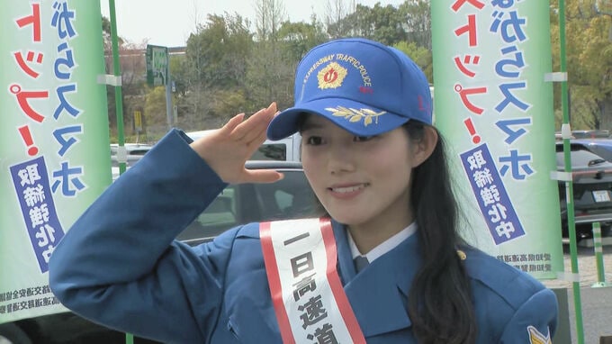 「ながらスマホ」やめて…CBC中村彩賀アナウンサーが愛知県警高速隊の一日隊長に 時速100キロの車は1秒間で28メートル進むことなど伝える