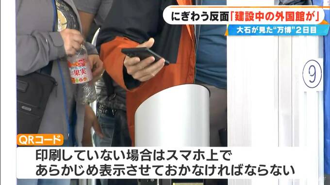 芝生が濡れていて入れず立ったままで食事…スマホは見にくい!?「紙のMAP」販売に長い列 【大石邦彦が大阪・関西万博2日目の来場者にいろいろ聞いてみた】