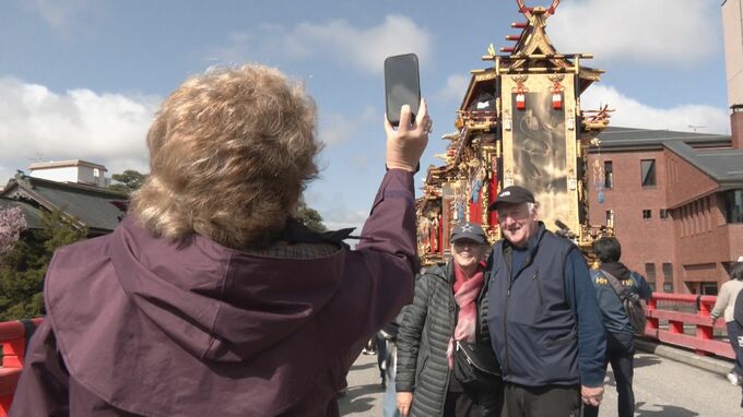 飛騨路に春の訪れを告げる「春の高山祭」。初日のきのうは青空のもと、からくり奉納が行われ、観客からは大きな歓声が!市の中心部にある中橋の近くでは桜が開花し、祭りに花を添えました!