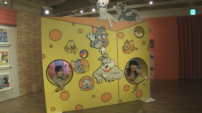 きょうは企画展開催に先立ち会場が報道公開されました。魅力的なキャラクターの紹介や85年の歴史を知ることができる展示があるほか、フォトスポットで「映える」写真が撮影できるコーナーなどトムとジェリーの世界に入り込んだような催しになっています。