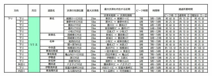 3. 【2025年・GWの渋滞予測】 ネクスコ中日本発表 下りは5月3日(土)4日(日) 上りは5月3日(土)~5日(月)ゴールデンウィークの高速道路どこが混雑?