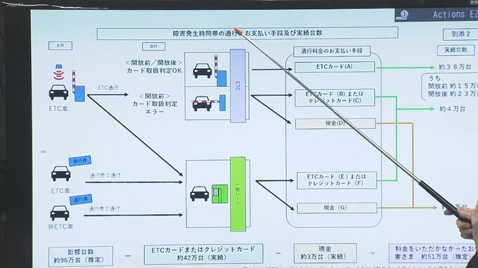 当日、トラブルのあった区間を利用した車は約96万台とみられ、トラブル当日にETCを利用した人には通行料金分がカードのポイントとして還元、もしくは、今後の請求から減額されます。