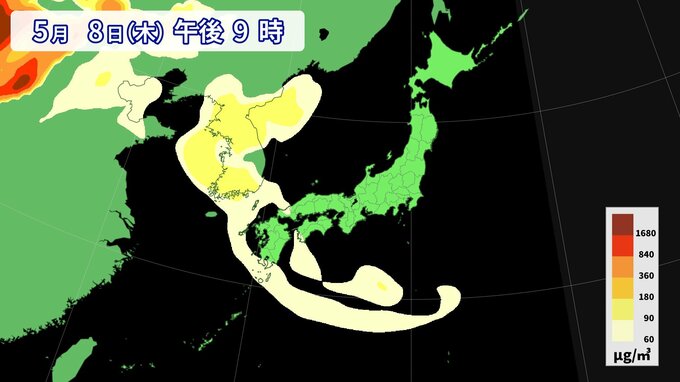 【黄砂情報】この週末は“黄砂”に注意 土日は九州・四国・中国・近畿・東海・関東に飛来 最新のシミュレーション