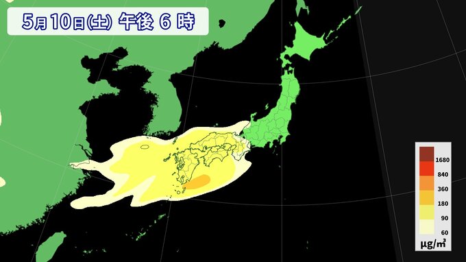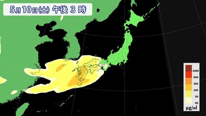 【黄砂情報】この週末は“黄砂”に注意 土日は九州・四国・中国・近畿・東海・関東に飛来 最新のシミュレーション