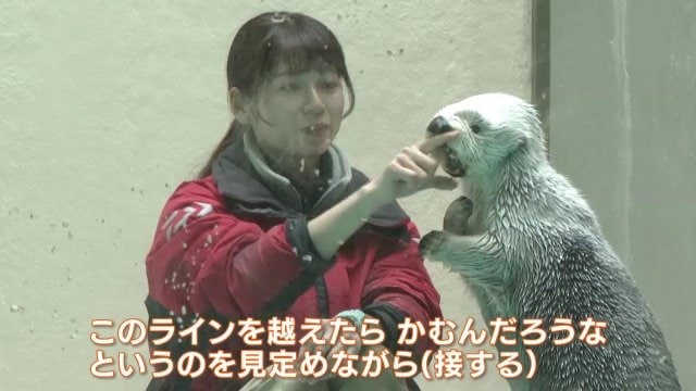(飼育係 南理沙さん)「基本的にはかまれるときは、飼育員のアプローチの仕方が悪いので、加減が分かってきた。このライン越えたらかむんだろうなというのを見定めながら(接する)」
