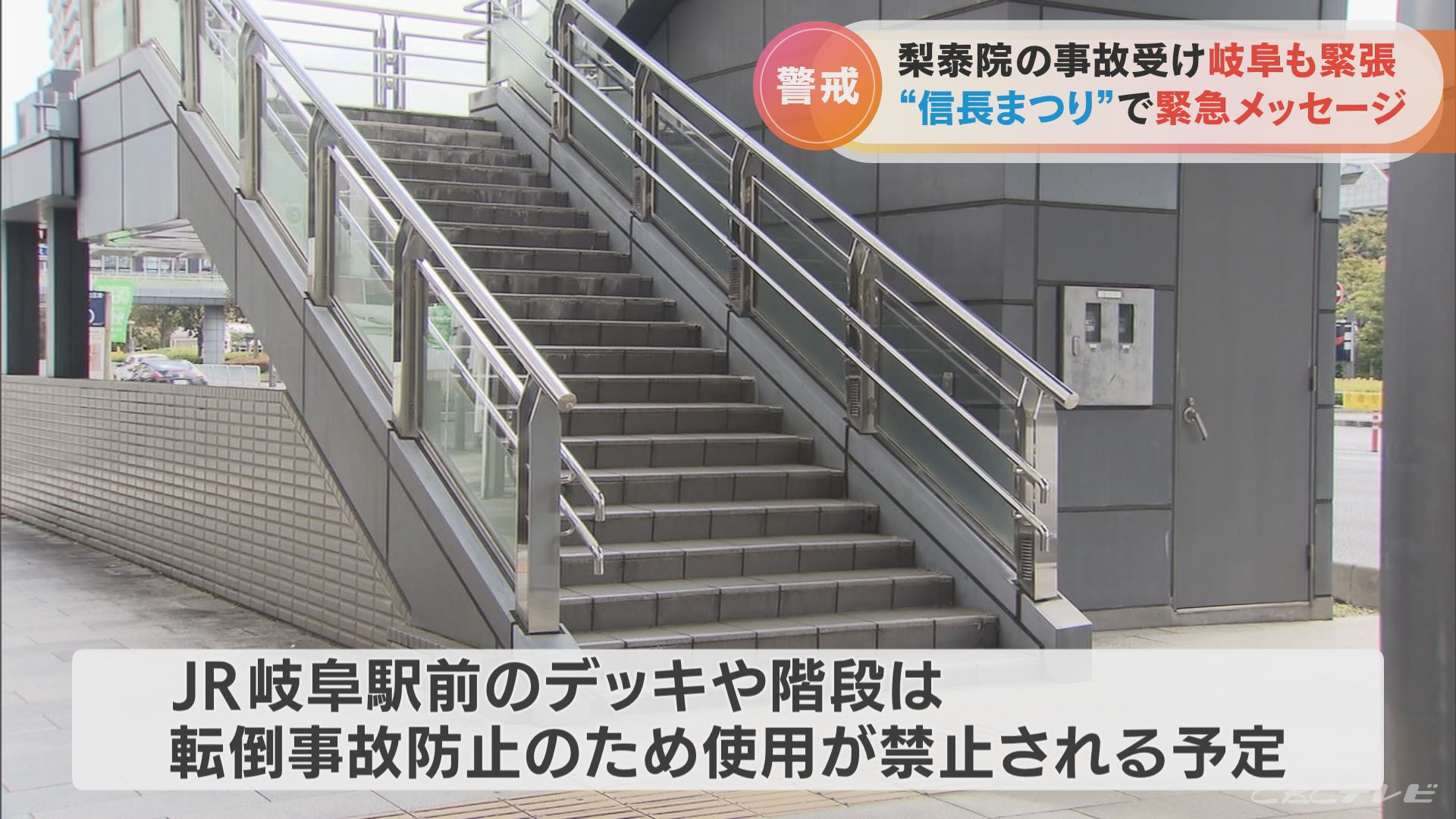「岐阜駅前の歩道橋には『ぎふ信長まつり』の際は、出店がずらーっと並ぶ予定だったんですが、安全上の理由で岐阜県警、岐阜市などから、こちらでは出店しないという指示が出た」