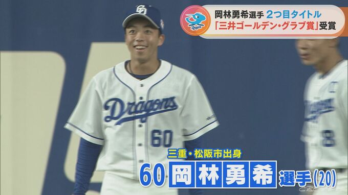 三重県松阪市出身の岡林選手が獲得したのは、三井ゴールデン・グラブ賞。