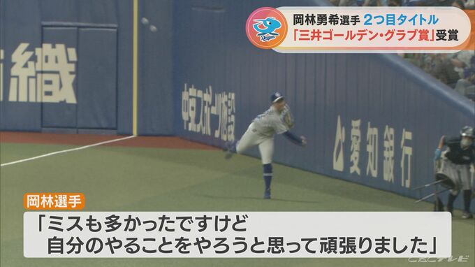 この賞は守備の名手に送られる、いわば守備のベストナインで、20歳の岡林選手は今回受賞した選手の中で最年少です。