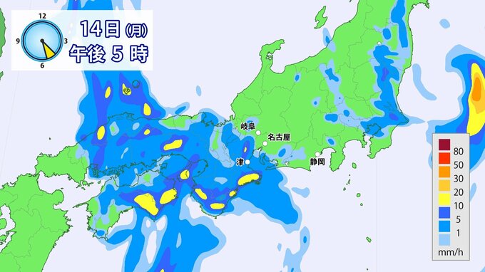 最新の雨シミュレーション(きょう午後7時~)