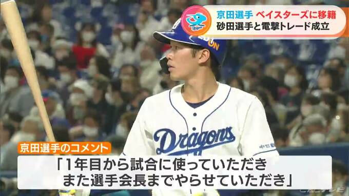 京田選手本人は「1年目から試合に使っていただき、また、選手会長までやらせていただき、中日ドラゴンズには感謝しかありません。活躍することが皆様に対して、恩返しになると思いますので、これからも頑張ります」とコメントしています。
