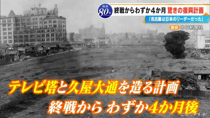 市民の心に希望の光をともすため、名古屋市が計画したのは、テレビ塔と幅100メートルの久屋大通を作ること。終戦からわずか4か月後のことだった。