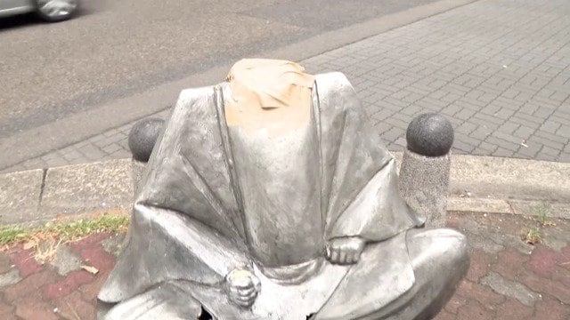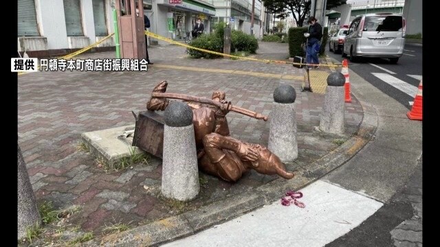 商店街の「豊臣秀吉像」首折られる 過去には織田信長像の左腕がもぎとられる被害 名古屋・西区の円頓寺商店街