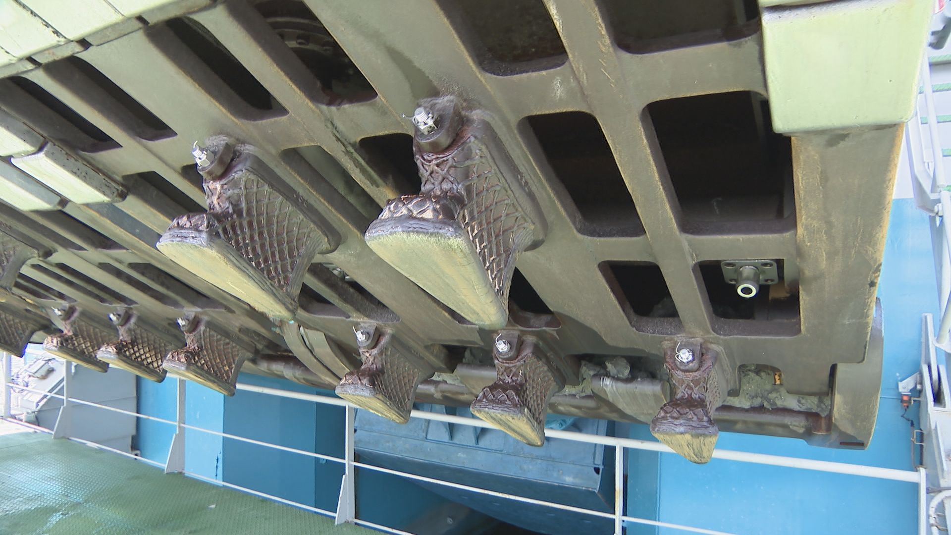 このドラグヘッドと呼ばれる部分を使って、海底の浚渫土砂を掃除機のように吸いあげます。吸い込まれた土砂は、いったん船内のタンクへ。