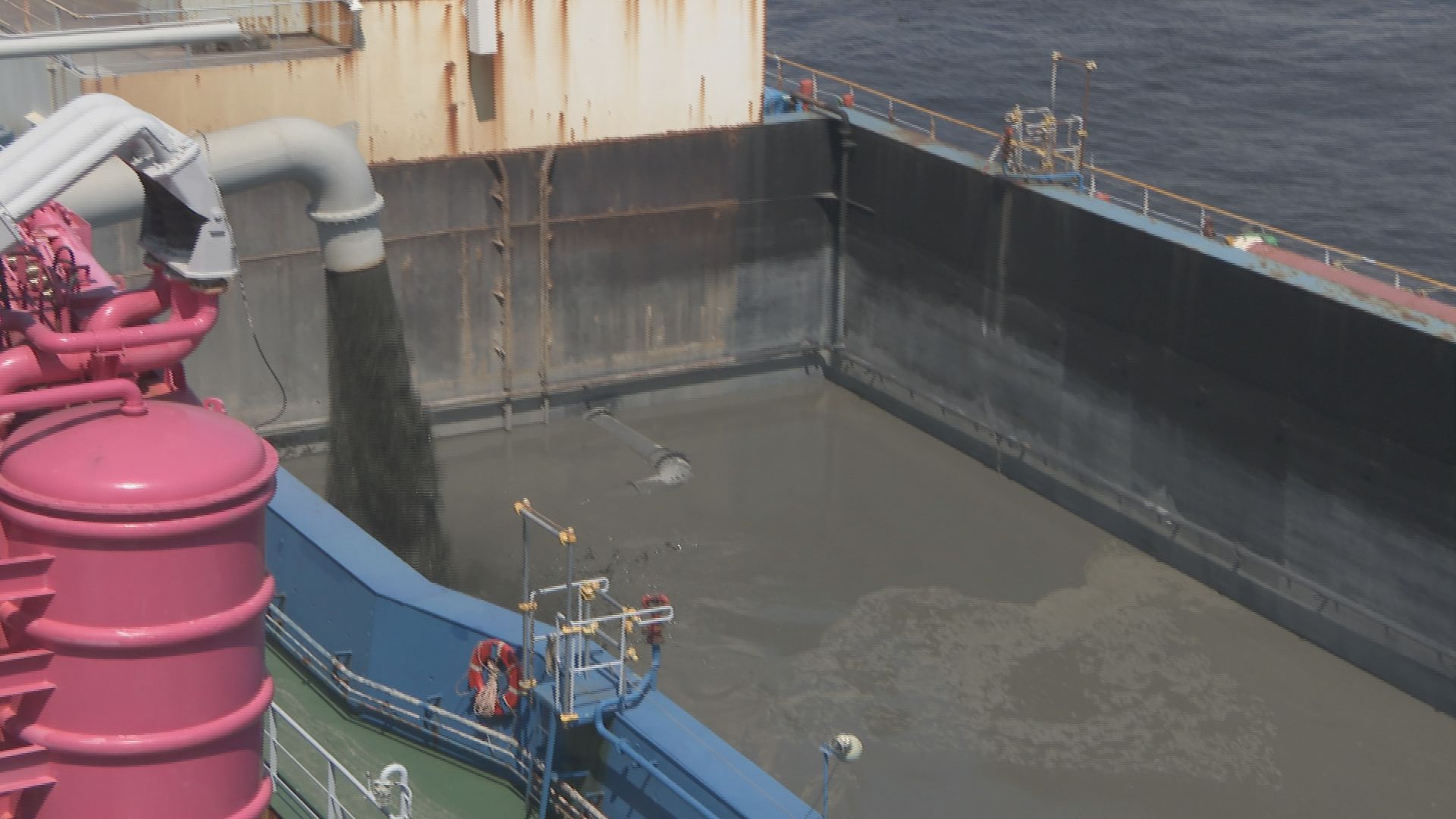 そして、タンクが土砂でいっぱいになると、一気に土砂を排出。この作業を清龍丸は平日の毎日24時間繰り返します。