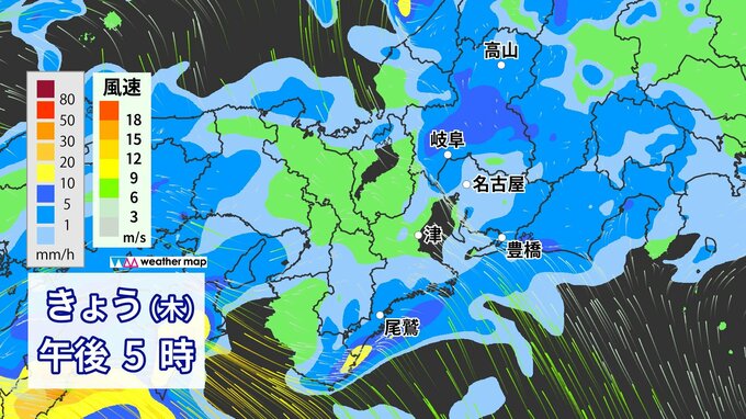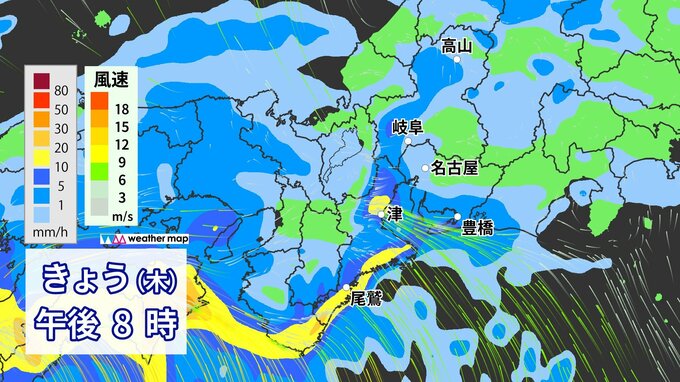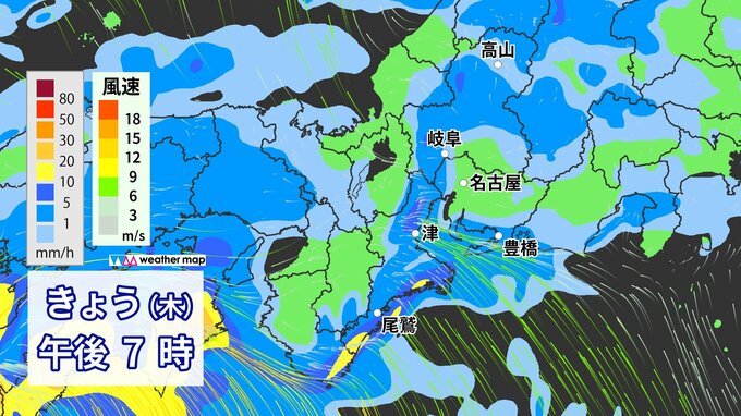 【画像】最新の雨・風シミュレーション あす午前0時~