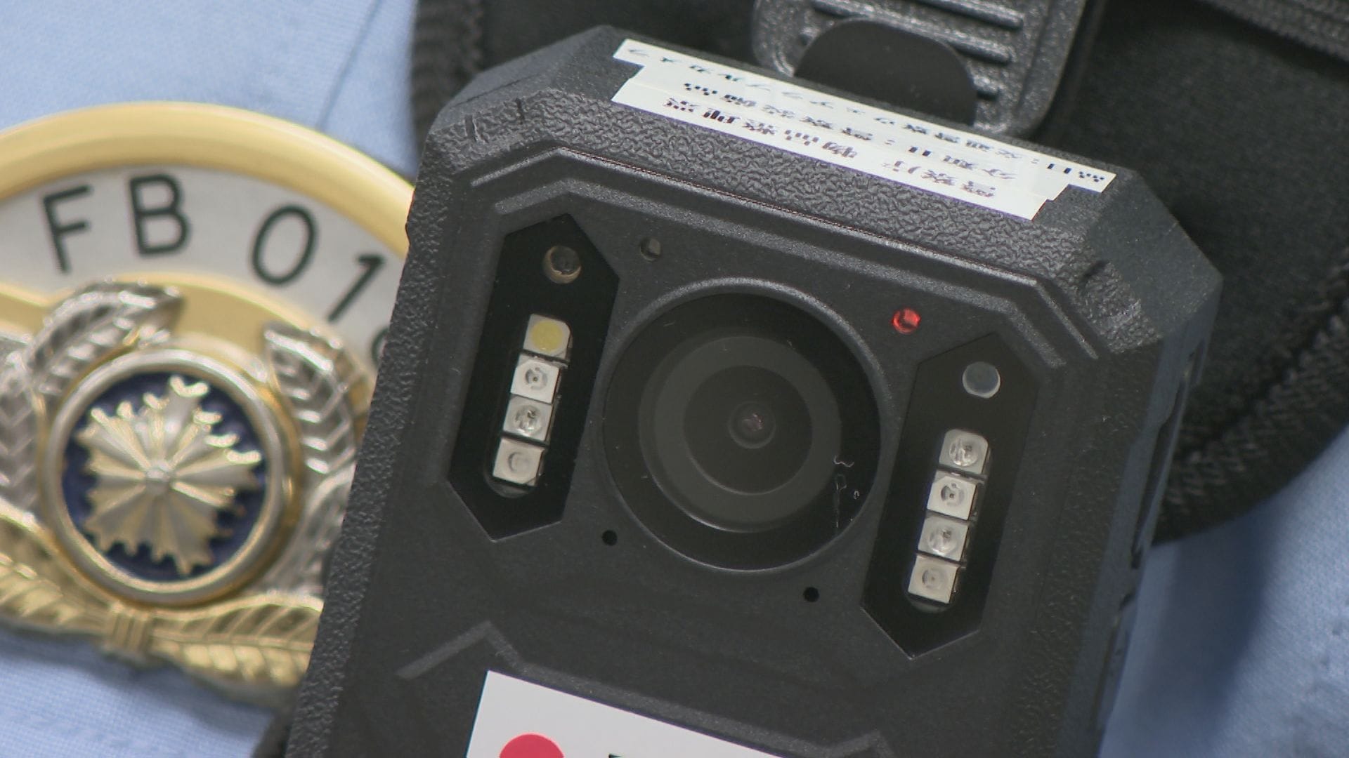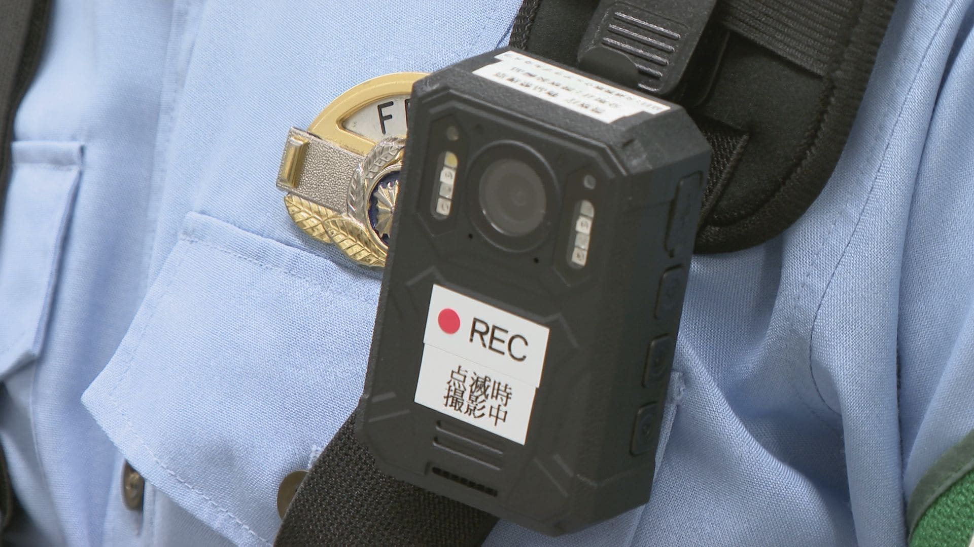 制服姿の警察官が胸に装着しているのは小型のウエアラブルカメラ。
