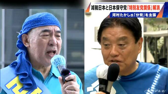 減税日本と日本保守党「特別友党関係」解消 百田尚樹代表らが通告 河村たかし氏共同代表の解任拒否「突然サドンリー バイバイでは…」 2025年10月1日(水) 20:05 国内 河村たかし衆院議員が代表を務める地域政党「減税日本」と日本保守党が袂を分かち、「特別友党関係」が解消されることがわかりました。河村氏は、百田尚樹参院議員が代表を務める日本保守党の共同代表を務めていて…
