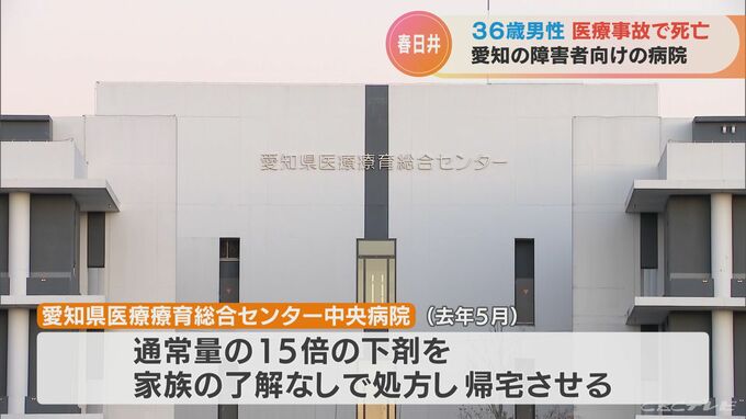 愛知県春日井市の障害者向け医療施設で、重篤な症状の患者を10分間放置する医療事故があり、36歳の男性が亡くなっていたことが分かりました。