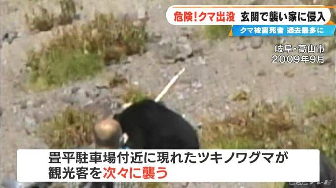 2009年9月。乗鞍スカイラインの終点、岐阜県高山市の畳平駐車場付近に現れた1頭のツキノワグマが、観光客を次々に襲いました。クマは一人の男性に覆い被さりました…。