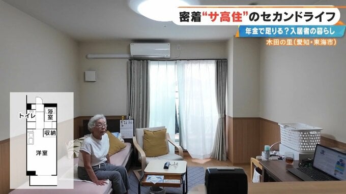続いても「第二の人生」に挑戦中という女性のお部屋へお邪魔します。 こちらのお部屋はゆったり暮らせる1R。もちろん安全安心の設備も万全です!