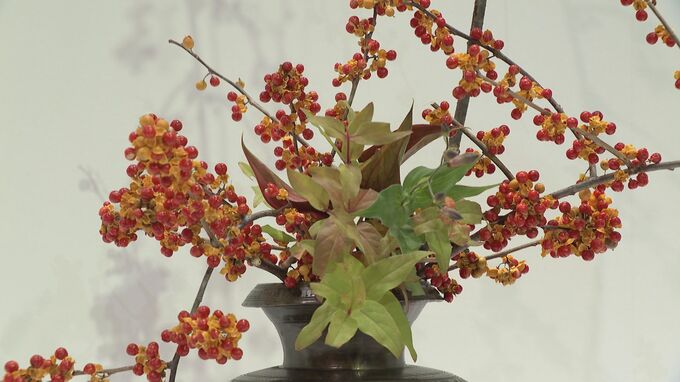 秋の季節を感じることのできる生け花の展示会が、名古屋で開かれています。