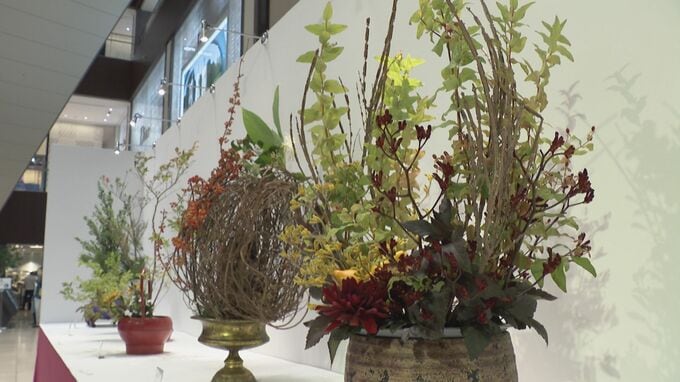 生け花の展示会「秋の花道展」 秋らしい色鮮やかな作品約50点を展示 「センス良く作るのがすごい」 10月29日まで開催 名古屋・ミッドランドスクエア