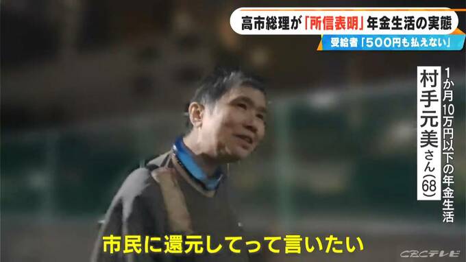 「もうちょっと年金を増やせっていう大半それだわ。だって政府の人たちなんて、左うちわでしょう。いっぱいもらってるんだもん。市民に還元してって言いたい。本当に年金をもっと上げておくれって…」