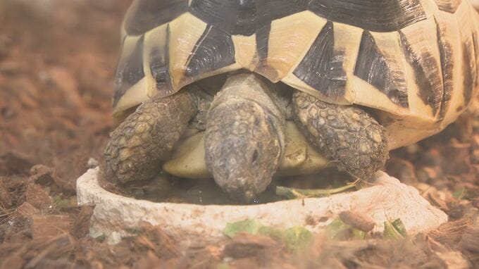 施設では、大きな水槽に熱帯魚を飼っていました。しかし、月5万円の費用がかかっていたため、10分の1の5000円で済むリクガメに変えたそうです。