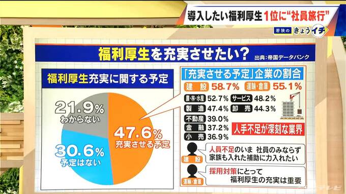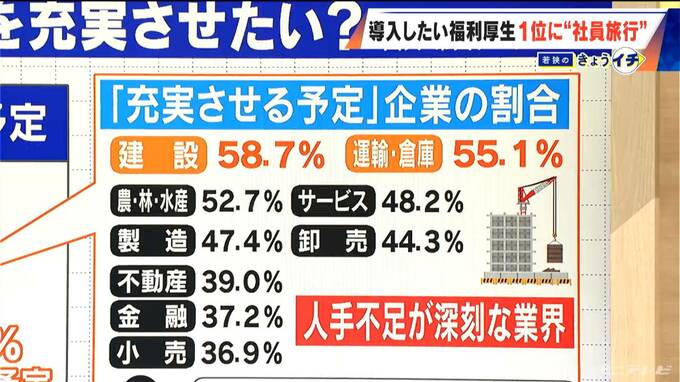 建設業界の関係者によりますと「人員不足のいま、社員のみならず家族も入れた補助に力を入れたい」。そして、運輸・倉庫関係者は「採用対策にとって、福利厚生の充実は重要」と話しています。