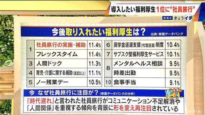 帝国バンクによりますと、「時代遅れ」と言われた社員旅行が、コミュニケーション不足解消や「人間関係」を重視する傾向を背景に、形を変えて再注目されているということです。