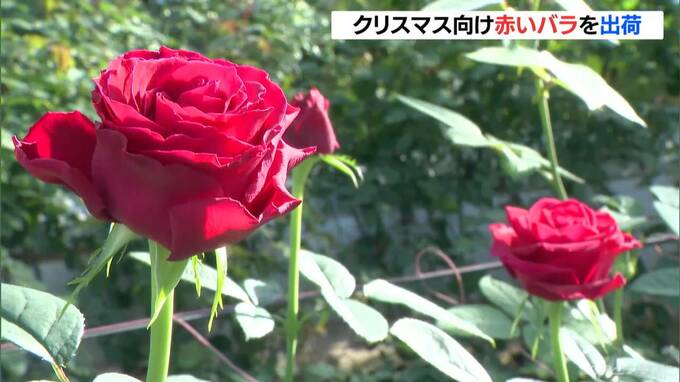 愛知県豊橋市で、クリスマス向けの赤いバラの出荷が最盛期を迎えています。