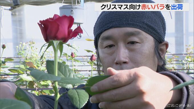 この時期はクリスマス向けの赤いバラの出荷が最盛期を迎えていて、豊橋市のハウスでも朝から花びらや葉の状態を確かめたあと、ハサミで摘み取る作業に追われていました。