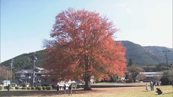 真っ赤に色づいた樹齢約90年のシンボルツリー 巨大「ハナノキ」が見頃に 吹奏楽部の演奏も 三重・松阪市の飯南高校 2025年11月17日(月) 19:30 国内 三重県松阪市の高校では、樹齢90年のシンボルツリーに秋が訪れています。鮮やかに染まった真っ赤な「ハナノキ」。松阪市の飯南高校で今まさに見頃を迎えています。樹齢約90年、高さ約25メートルの巨大なハナノキは…
