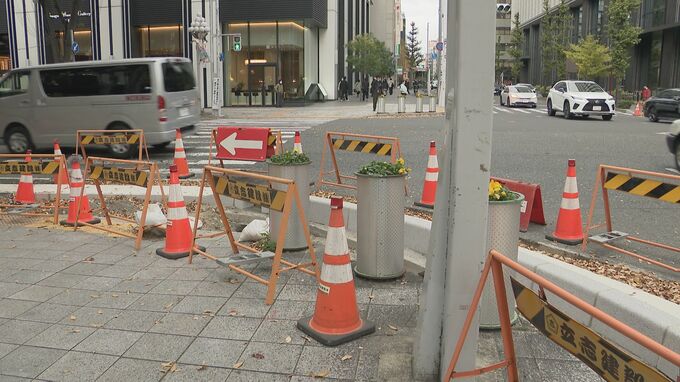 名古屋市によりますと中区栄2丁目にある「SRT」停留所の工事現場で、きのう未明、現場を囲っていたバリケードに車がぶつかりました。