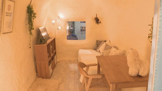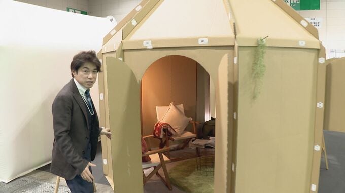 約100の企業や団体が出展している見本市。目玉の一つが名古屋工業大学の北川啓介教授が開発した「インスタントハウス」です。空気で膨らませて屋根と壁を組み立て、1人でも1~2時間で建てることができます。