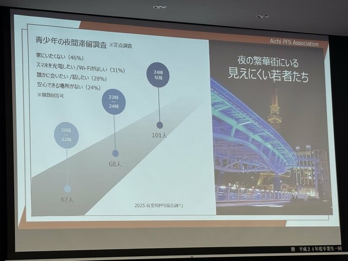 こう話すのは名古屋・栄の夜の街などを定期的にパトロールし、若者の居場所づくりに取り組む、愛知PFS協会の星野智生代表です。