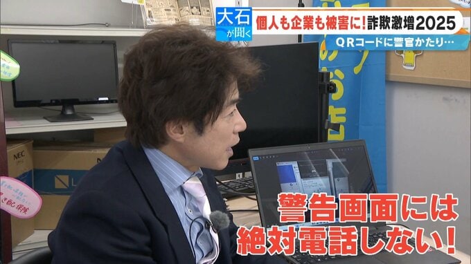 「こういった警告画面が出たら、絶対に電話しないということを念頭に置いておかないといけませんね」