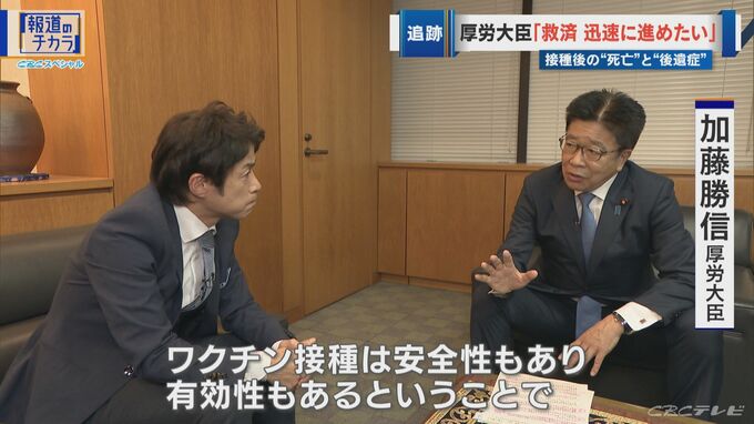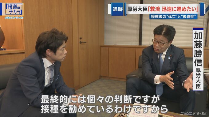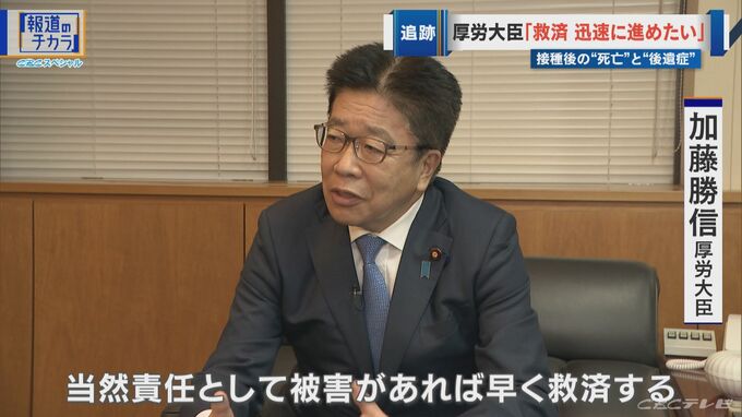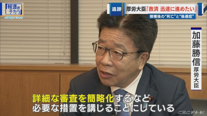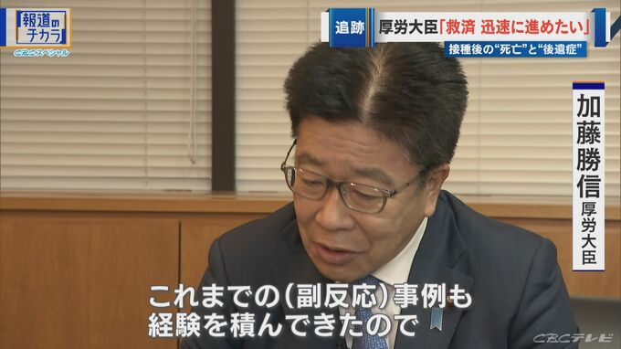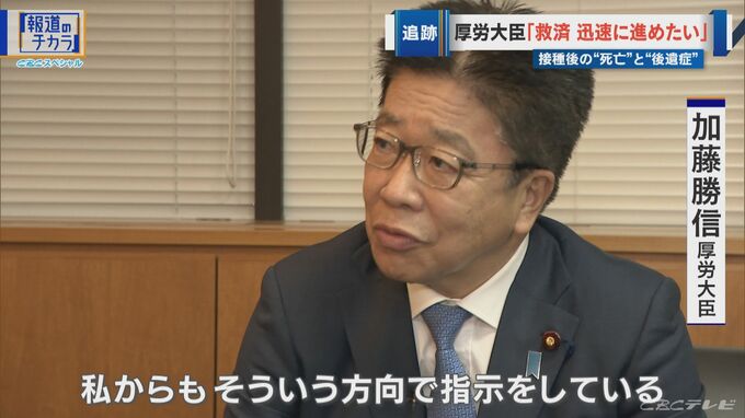 新型コロナワクチンの接種後に死亡したり、体調不良に陥る“後遺症”に苦しんだりする事例が相次いでいる問題について、加藤勝信厚生労働大臣は、12月16日午後、CBCテレビ「報道のチカラ」の取材に応じ、「救済を迅速に進めたい」と話しました。