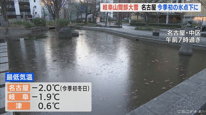 強い寒気の影響で、名古屋では19日朝の最低気温が氷点下2℃まで下がるなど、各地で今シーズン一番の冷え込みになった他、岐阜県山間部では大雪になっています。