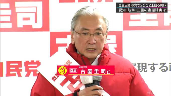 【衆議院選挙】岐阜5区 古屋圭司氏(自民)に当選確実 2026年2月8日(日) 20:09 国内 岐阜5区で当選を確実にした、自民党 前職の古屋圭司さん。党の選挙対策委員長として、ほかの候補の応援に回ったため地元での活動は限られましたが、自民支持層を固め、13回目の当選を確実にしました。