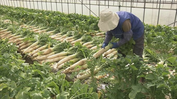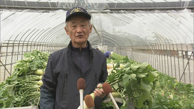「ハウスの春だいこんの一番の特徴は、甘くてシャキシャキしている。生でサラダにして召し上がると本当に実感できる。とってもおいしいです」