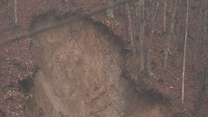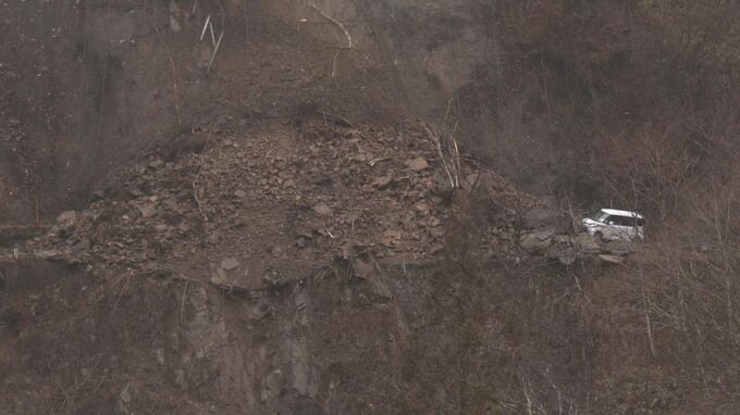 その後、午前6時前に車で通りかかった40代の男性から「けがをしました」と119番通報がありました。男性は崩れた土砂に乗り上げて胸などを打ち、軽傷だということです。
