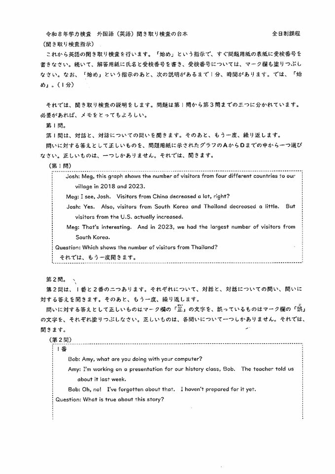 愛知県公立高校入試2026「英語」の試験問題・解答「留学生との対話が成り立つように…」など全問掲載
