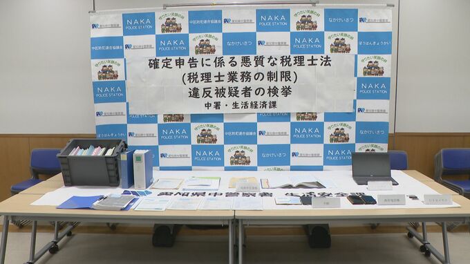 警察によりますと、越田容疑者はおととしから去年にかけて、税理士の資格がないにもかかわらず、副業として顧客3社から依頼を受けた確定申告書など6通を作成した税理士法違反の疑いがもたれています。