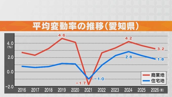 一方、商業地の上昇率トップは名駅南5丁目。1平方メートルあたり49万5000円で上昇率は13.8%。