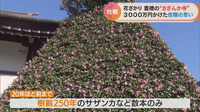 冬のいまが見頃のサザンカ。愛知県豊橋市に「さざんか寺」と呼ばれるお寺があります。およそ3500本ものサザンカは、住職が3000万円以上をつぎ込んで増やしたもの。その思いとは。