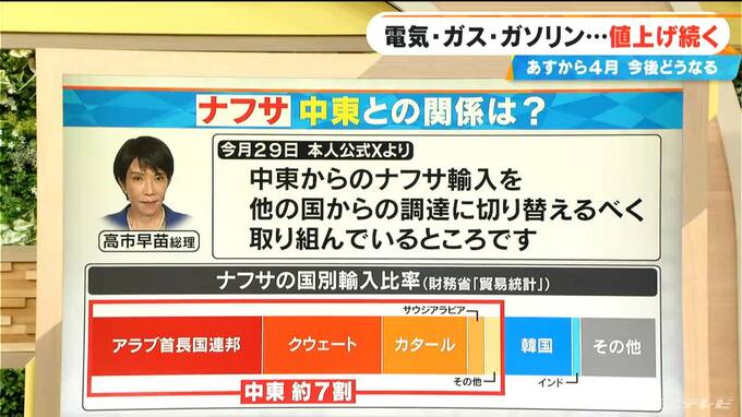 医療の分野でも必要とされているため、やはりこのナフサをなんとかしないといけないということで、高市総理は公式Xで「中東からのナフサ輸入を 他の国からの調達に切り替えるべく取り組んでいるところです」コメントしました。