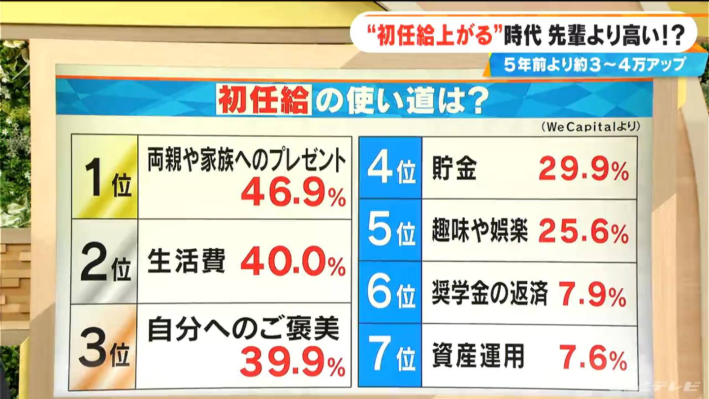 初任給の使い道1位は…?