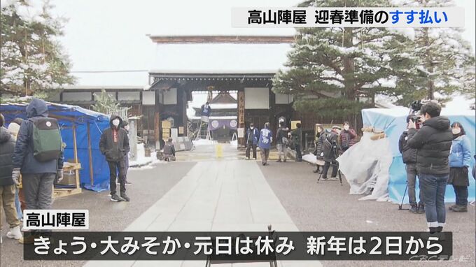 迎春準備を終えた高山陣屋、29日と大晦日、元日が休みで、新年は2日からです。